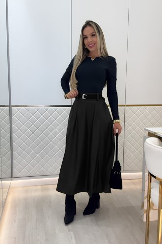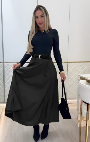 • Kadın yüksek belli maxi deri kemersiz etek