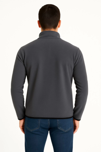 • Erkek Polar Kazak Dik Yaka Yarım Fermuarlı Fermuarlı Göğüs Cepli Siyah Biyeli Kışlık Rahat Regular Fit Günlük Model Füme