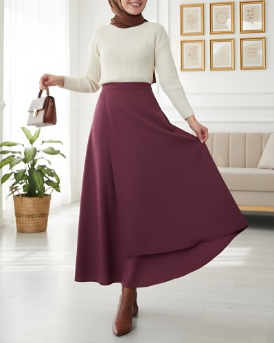 • Önü Çapraz Çift Katlı Scuba Etek Bordo
